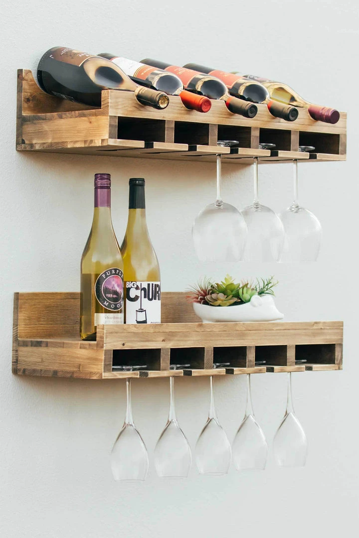 Show off your most treasured wine collection with this Atterstone Multifunctional Wine Rack Shelf with Wine Bottle Rest and Hanging Stemware Holder! Its multifunction design makes a vibrant addition to your kitchen or dining room, while functions as a space-saver with its wall-mounting feature. Aside from the wine and the glasses, you can also maximize the rack by putting in small indoor plants, pictures, or other bar accessories that will surely add character to your dining room or kitchen. Organizing made easy and classy! This wine rack shelf is definitely a total package of style, functionality and quality!