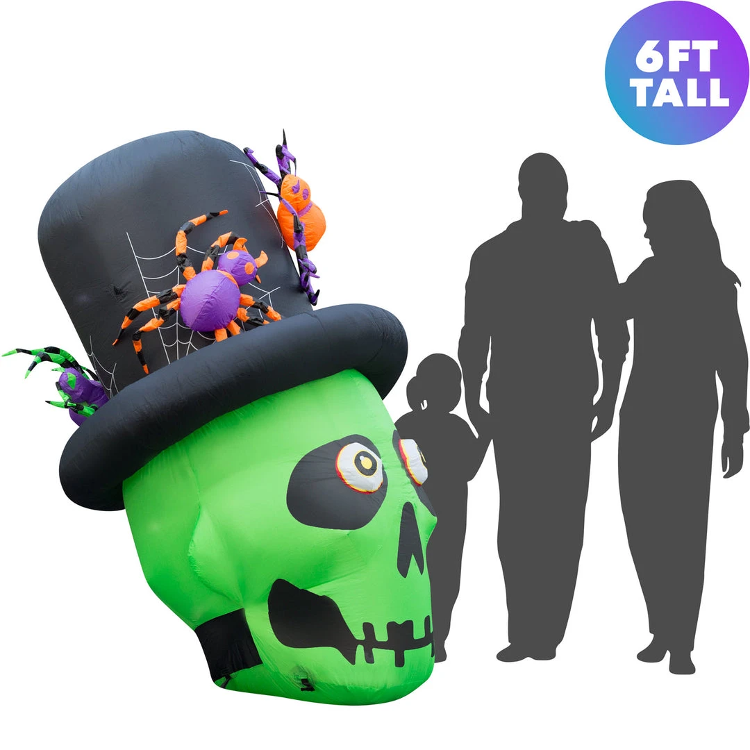Standing at 6.5 ft tall when fully inflated, this Skull in a Top Hat is a fun, easy-setup inflatable that both kids and adults will enjoy.