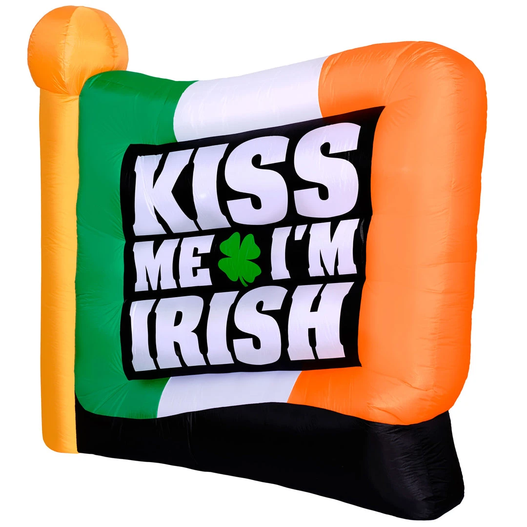 Share your lucky day with the entire neighborhood with this 6ft “Kiss Me I’m Irish” Flag outdoor decor. At its fully inflated height of 6 feet tall, this flag inflatable is hard to miss!