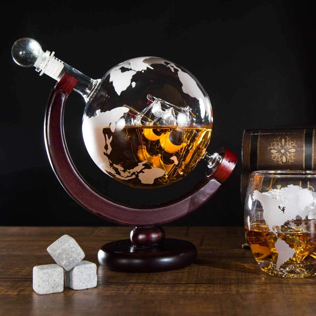 This decanter boasts many quality aspects, but it is also exceptionally functional. The total volume of 850ml (28.5 oz) means it will hold a full 750ml bottle of your favorite spirit. It also includes a glass stopper with an air tight plastic gasket to ensure your spirits stay as fresh as the day they were opened! This full set also includes two matching 8 oz whiskey glasses that are etched with a similar globe design. We have also given a set of 9 whiskey stones with this set to ensure you no longer have to worry about diluting your favorite drink with ice cubes. Why do we include all of these accessories in one set? We do this because we understand the importance of convenience and  consistency.