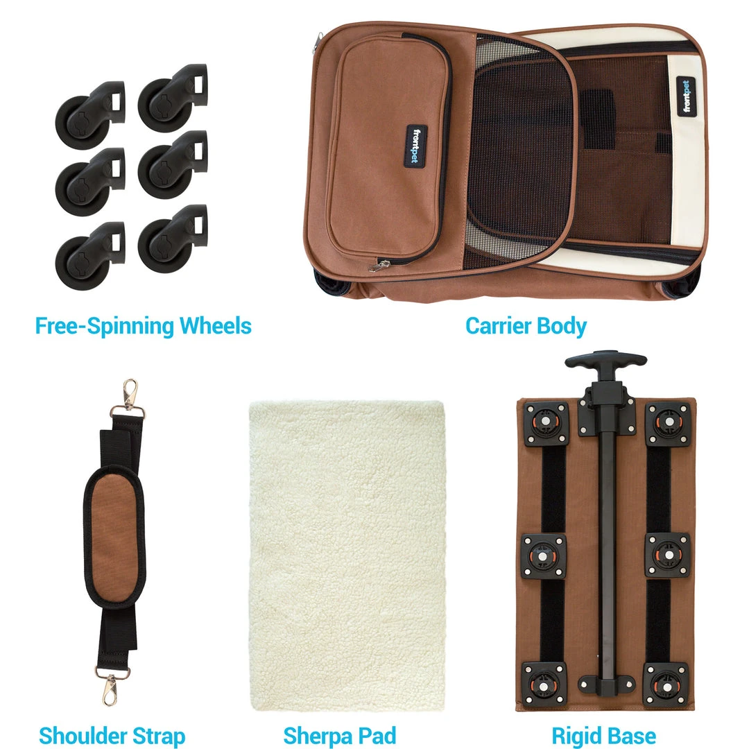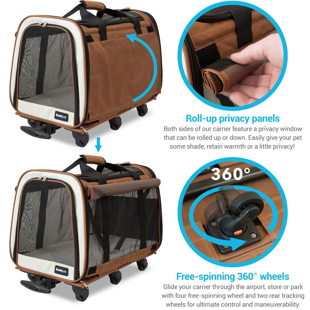 Handle the carrier whichever way you choose! Roll it in airports, push or pull it down the street, or simply carry it with the top padded handle. The carrier has 6 wheels for easy maneuverability and maximum control. When rolling, extend the side handle up to 34” and lock it in place.