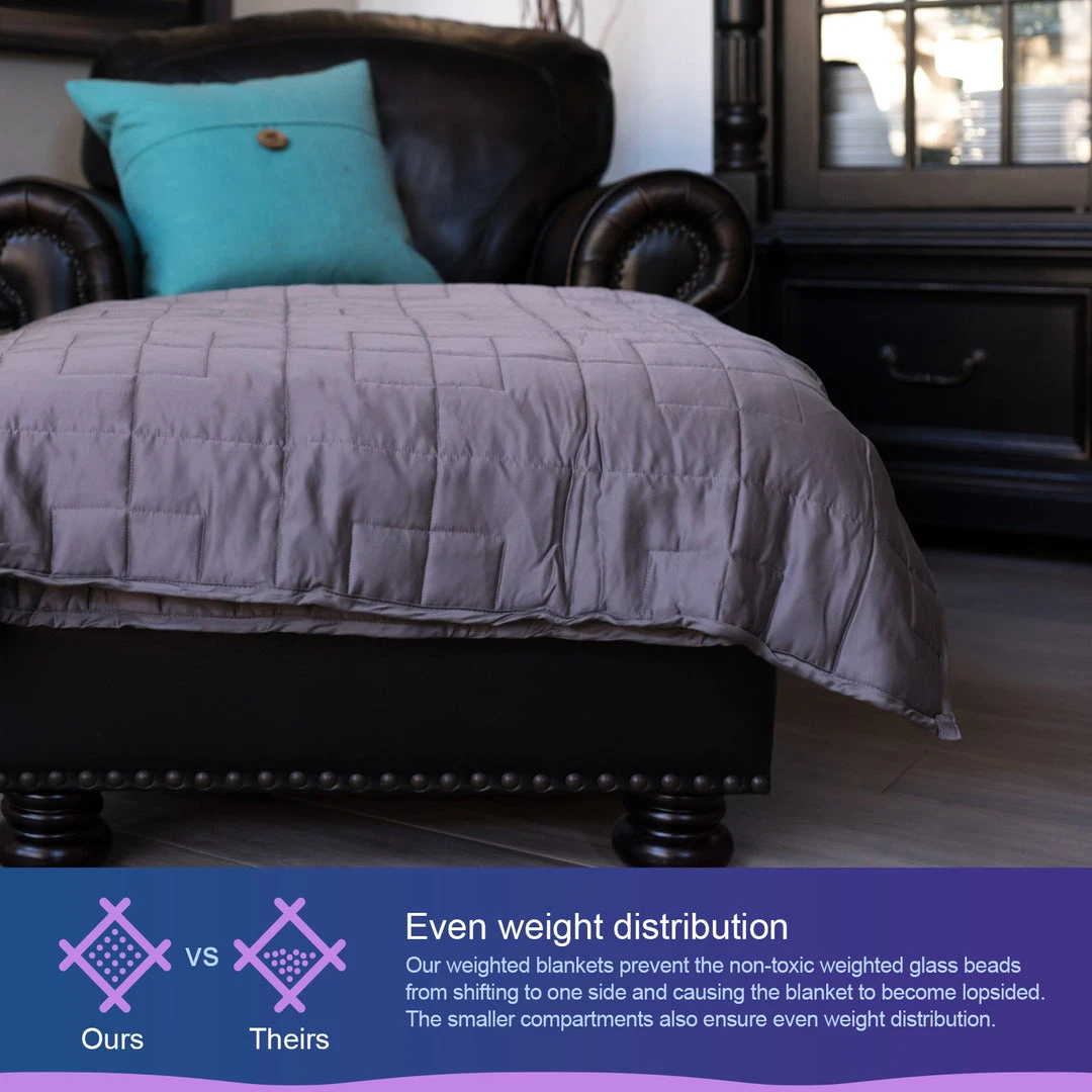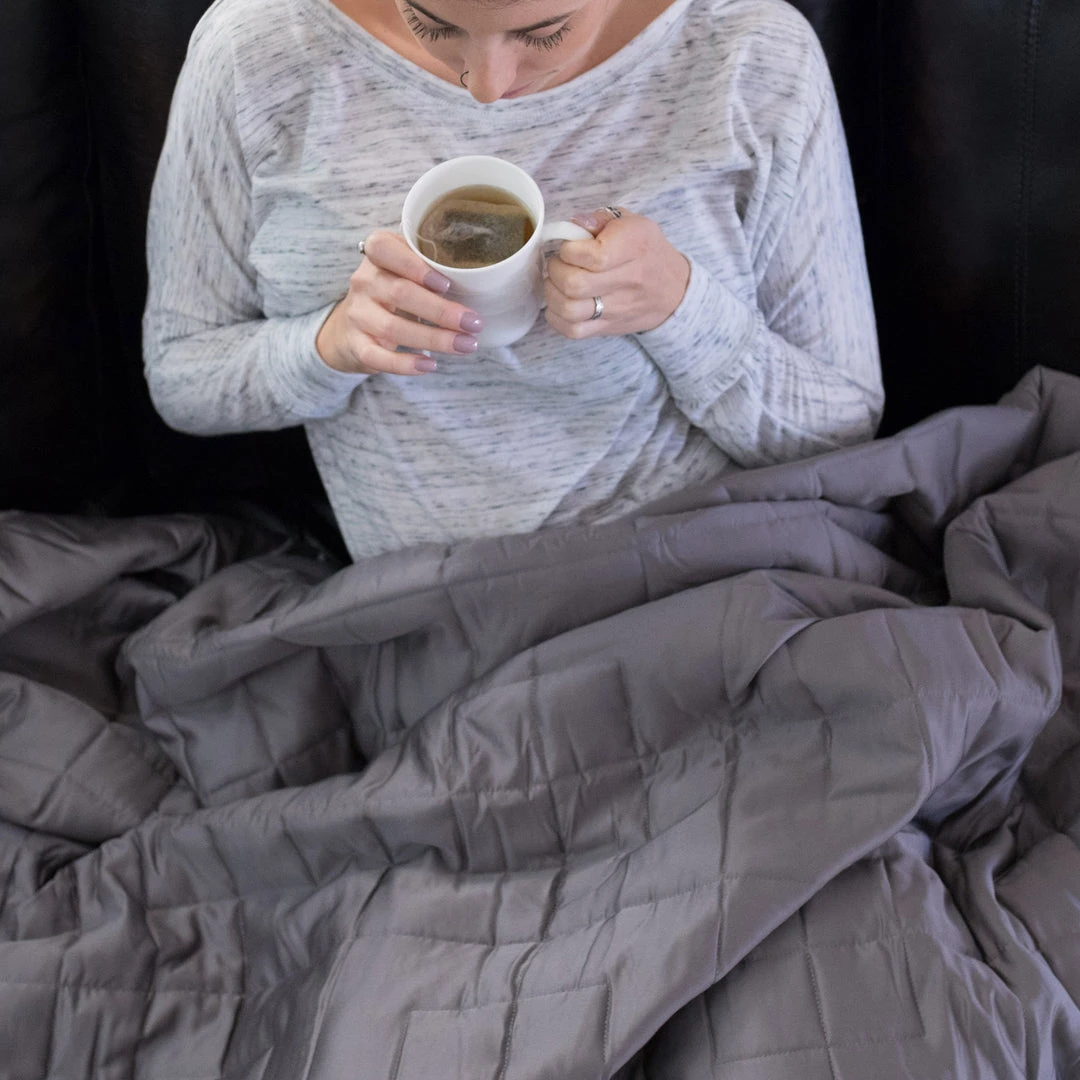 Filled with non-toxic, hypoallergenic, micro glass beads, this weighted blanket will feel like a comforting hug to help you wind down and fall asleep faster.