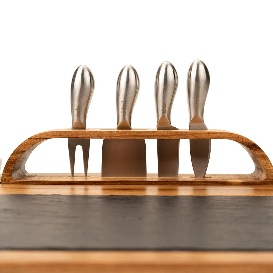 - Hand cut slate stones are smoothed and finished to perfection, premium solid stainless steel cheese tools