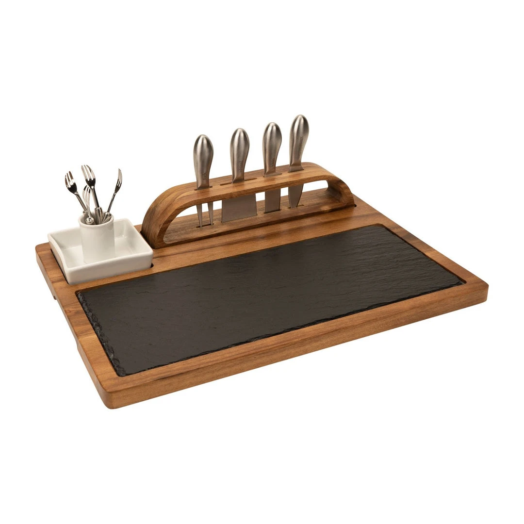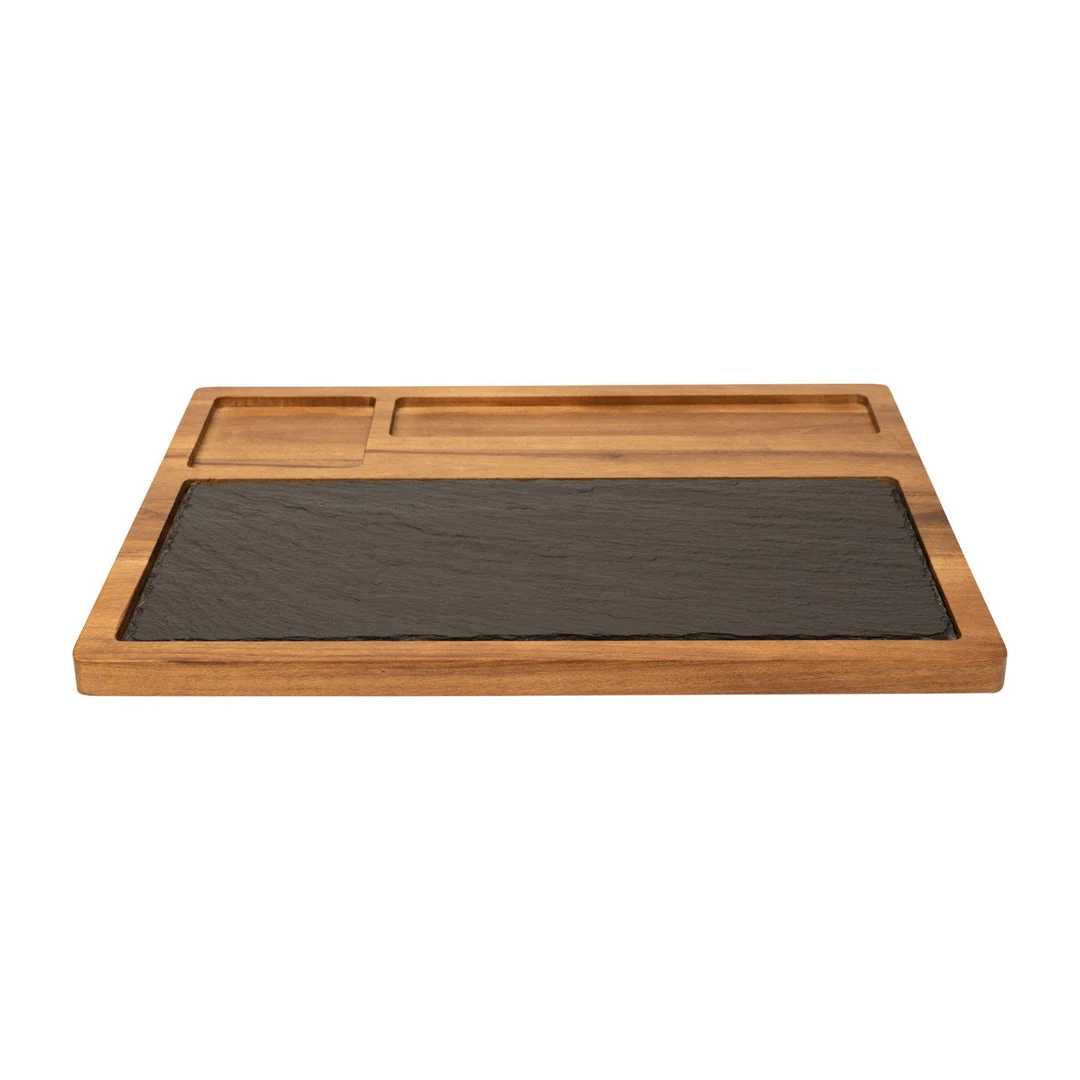 - Sustainably produced natural acacia wood with a slate cheese board inlay